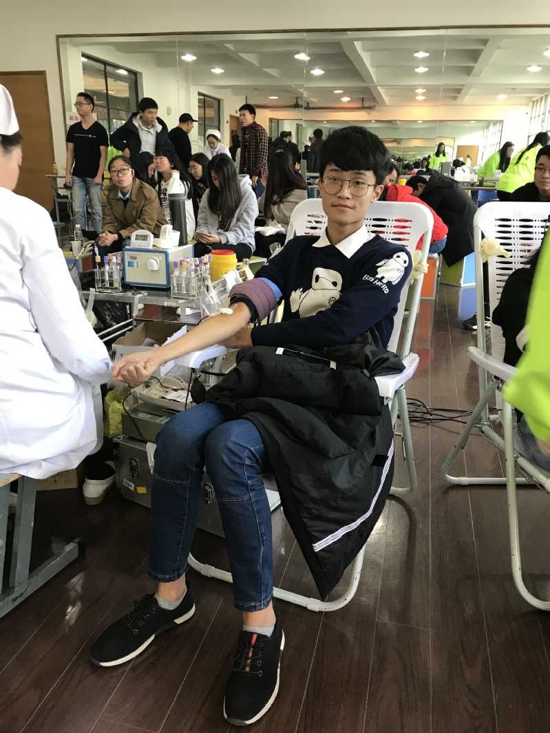 上午八点半,来自上海血液中心的工作人员就位后,活动正式开始。本次活动现场共分为登记区、体检区、献血区、休息区、领证区五大区域,还有来自社会实践部的志愿者为前来献血的同学们提供服务和帮助。在通过血液初筛后,同学们撸起袖子,献出了200cc的爱心血液。