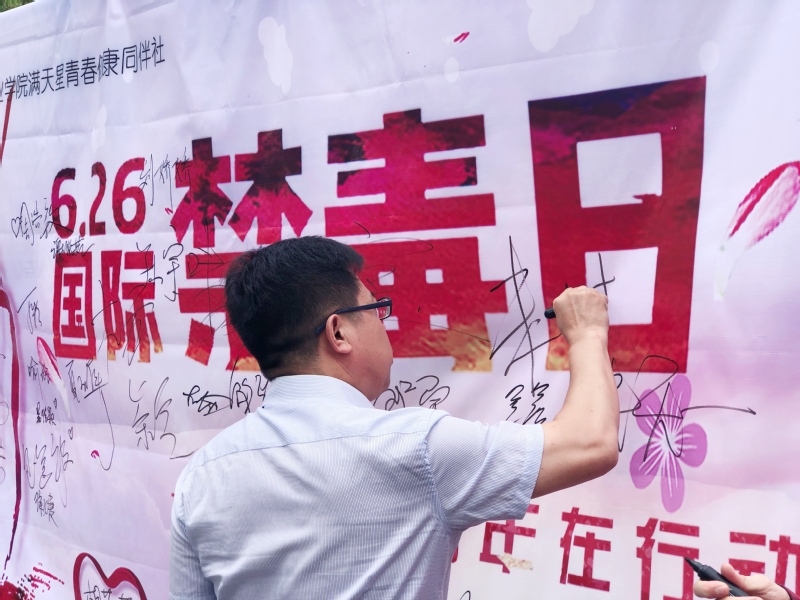 2019年6月26日是第32个国际禁毒日。为扩大禁毒宣传教育覆盖面,使同学们更加深入地了解毒品危害,星空专业版免费下载游戏满天星青春健康同伴社以“无毒青春,健康同伴”为主题开展宣传教育活动,活动以答题竞赛、发放宣传册、师生签名等形式展开。