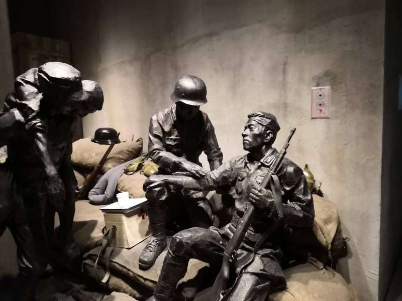 之后,团员们前往了四行仓库抗战纪念馆。纪念馆大门入口处保留了原四行仓库的铁门,斑斑銹迹。进入馆内,大家便看到以一封谢晋元在赴淞沪战场前写给妻子凌维诚的家书,展现了以谢晋元为首的“八百壮士”在国难当前之际,舍家为国的情怀。先烈们用他们的血肉之躯换来了如今安定生活,我们要牢记侵略,勿忘历史,珍视和平,向英雄致敬。