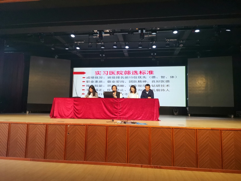 会上,首先由我院吴主任作了实习前动员报告。吴老师对实习医院筛选标准:成绩优异、职业素质、操作技能、五官端正、书写简历等方面进行了逐一全面的分析,并重点提到了学生面试的礼仪与技巧:尊重、简历、着装、自我介绍、技能。吴老师希望每个实习生端正实习态度,注意人身安全,严格遵守学校和实习医院有关规章制度。