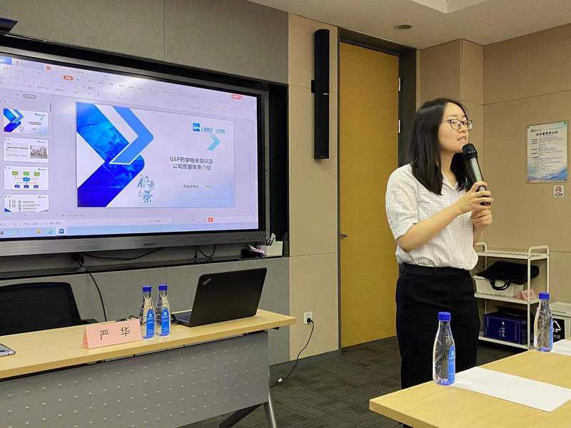 首先上药控股质量管理部严华老师先带着同学们解读《药品质量管理法》并要求贯彻落实四个最严要求,同时老师还从《药品经营管理条例》、质量管理部门介绍、质量管理体系介绍三个方面为同学们讲解。