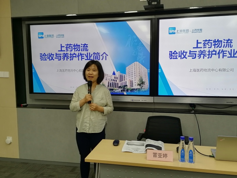接着上药控股物流公司冒亚婷老师通过同学之间互动、短视频和ppt三者结合的形式为同学们讲解了上药物流验收和上药养护作业两大板块内容。