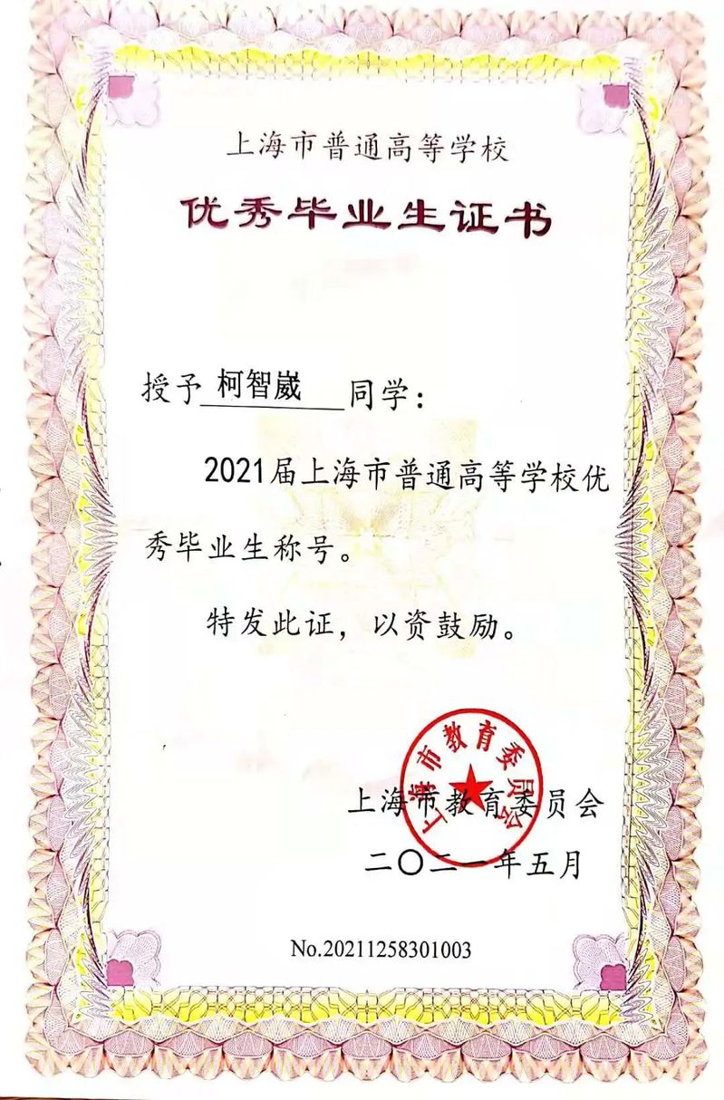 刚入学的时候,柯智崴就很向往加入党组织,有机会就立马提交了申请书。因为中考失利埋下的种子,他很没有自信,担心自己不能被党组织接纳;觉得自己并不优秀,甚至要比普通人还要差一点。但在震旦的三年,他成功入了党,成绩也一直名列前茅。