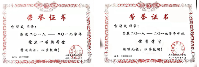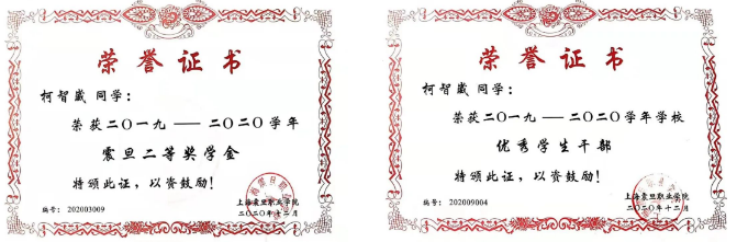 对于自己,柯智崴还是有要求的,一旦太过松散,机会来了抓也抓不住,用他的话来讲就是自我被驱动能力很强,有目标就有无限的动力。比如在校的一些荣誉和奖项,又比如申请入党。