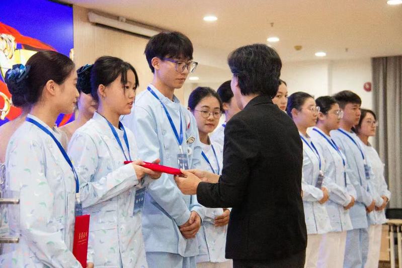 大赛活动分为赛前培训和养老服务技能赛两个部分。培训内容丰富,除理论授课以外,组委会还精心安排了技能实训工作坊进行实践学习,并到养老服务能力建设基地进行企业参观实践,拓宽了指导老师和参赛选手的视野,为后续的技能比赛打下坚实基础。由于育、训、赛结合,老师和同学们备赛时间短、任务重。在如此困难下,老师和同学们日以继夜努力拼搏,白天培训参观学习,晚上在老师的指导下,选手们一遍遍反复抓细节积极训练。在为期两天的紧张激烈技能竞赛阶段,两位选手结合在培训和练习中掌握的养老服务技术和能力,向评委老师们展现了震旦师生的风格和水平,通过以赛促教、以赛促学,把对大赛的技能、理念和思考带到了学习实践当中。