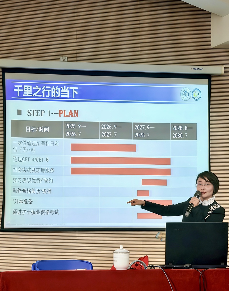讲座中,陆群峰主任结合自身数十年临床护理、教学管理与人才培养经验,系统阐释医护工匠精神的核心内涵,细致梳理护理行业发展历程、学历提升通道与职称晋升路径,并运用 PDCA 循环方法,为同学们制定学业规划、职业发展提供科学指引。她用真实临床案例与成长故事,鼓励大家坚守仁爱之心、秉持严谨态度、勇于突破创新,树立“人生不设限、行行出状元”的坚定信念。